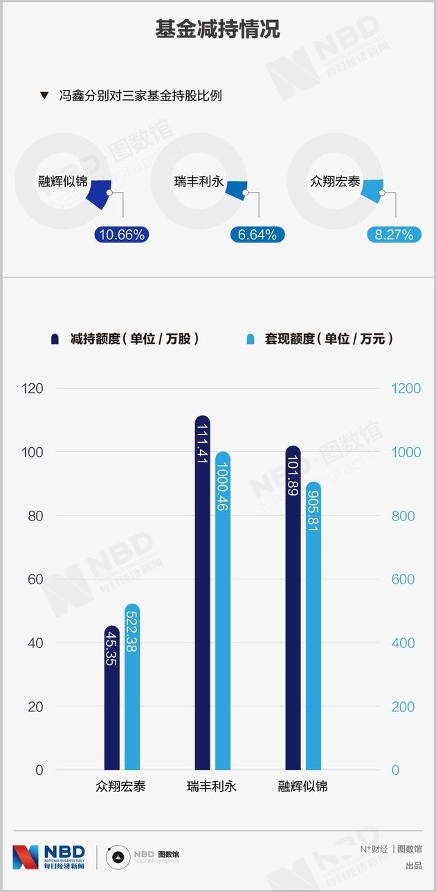 截至目前,冯鑫并未减持名下股票,套现主要是通过他控制的基金进行。早在2016年,融辉似锦、瑞丰利永、众翔宏泰三只基金就已出现在暴风集团前十大股东名单中,其实际控制人均为冯鑫。