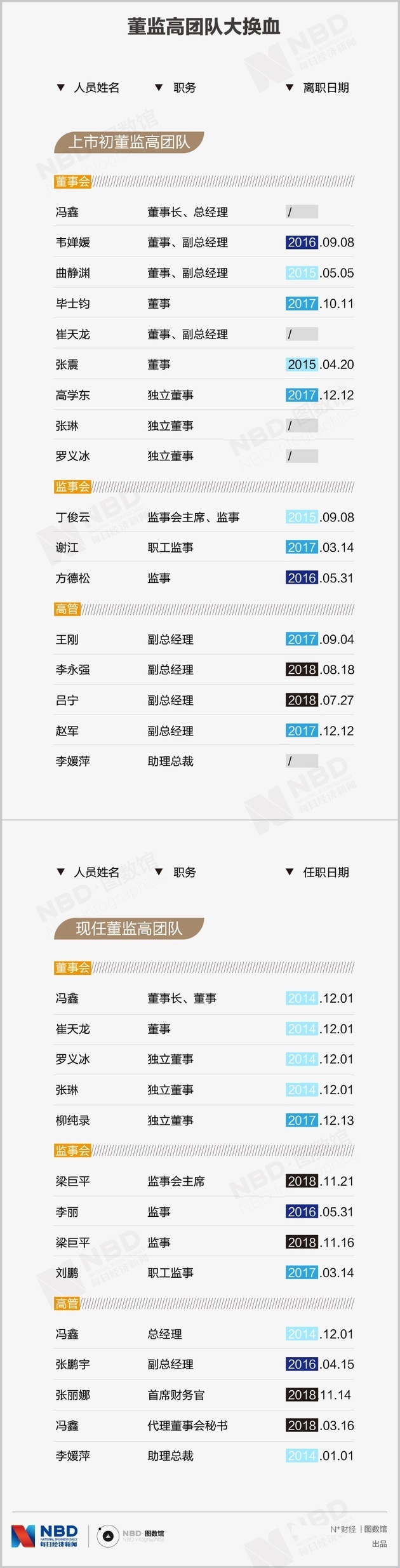 在暴风集团上市前,公司董监高团队共17人。上市3年多,如今原董监高团队,除了两名独立董事,董事长、总经理冯鑫,就只剩下董事崔天龙和助理总裁李媛萍。