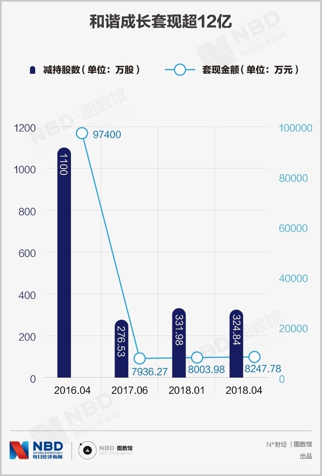 其中,和谐成长先后于2016年4月、2017年6月、2018年1月、2018年4月减持上市公司股票,合计套现超12亿元。
