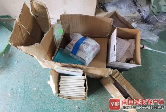 20日下午,南国早报记者在现场看到,里面一片狼藉。除了一套输送机外,地上还有几个包裹,都已经被拆封。